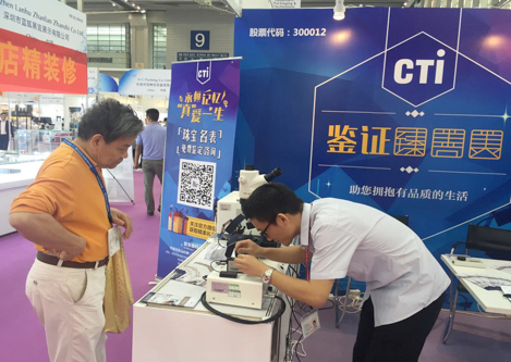 在展区现场,CTI华测奢侈品检测珠宝鉴定师介绍了宝玉石鉴定、钻石分级、翡翠分级、珍珠分级和贵金属检测等珠宝鉴定知识,吸引大量市民前来鉴定、咨询。